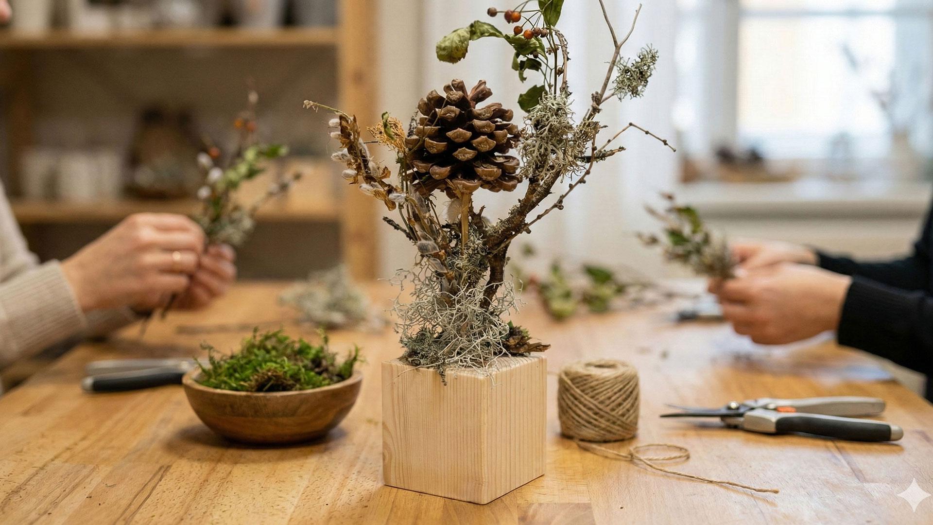 Nimm dir eine Auszeit vom Alltag und entdecke die Freude am Gestalten. In meinem Atelier in Wörth lernst du, wie aus Zweigen, Blüten und Moos wunderschöne Unikate entstehen.